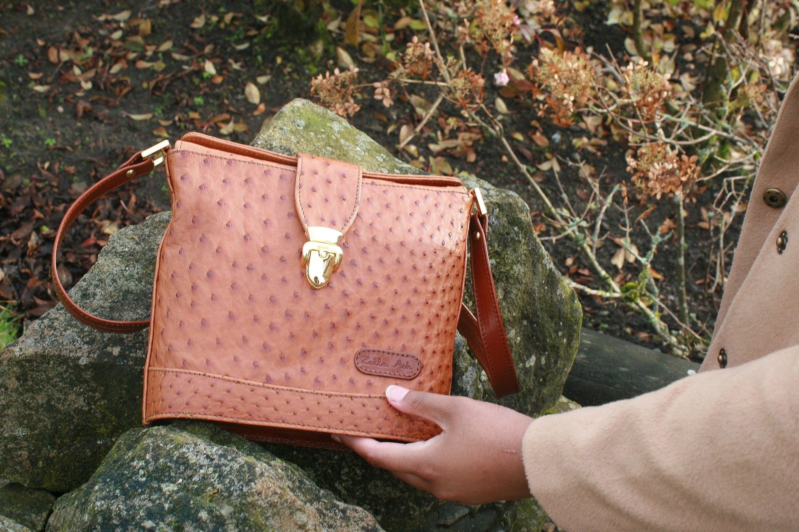 Zella Ash – Sonya Ostrich Leather Envelope Cross-body Bag