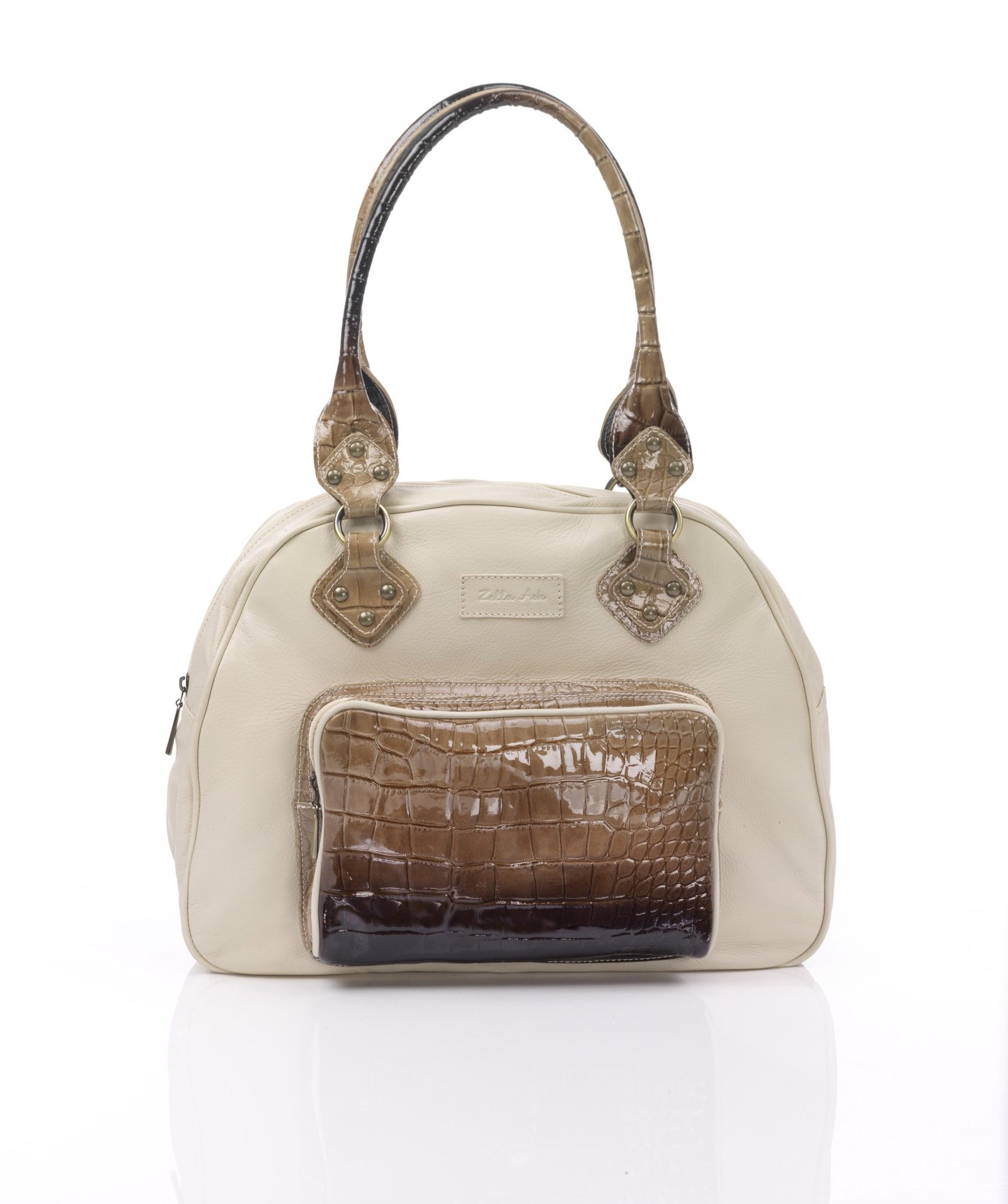 The shoulder straps have crocodile skin design that matches the outside pouch. The pouch’s color matches the strap and coordinates beautifully with the soft beige leather and really stand out from the crowd the bag itself is extremely roomy and durable.